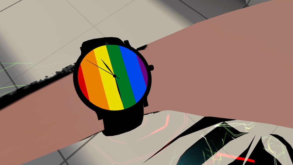 The watch is a fully functioning watch for VRChat 3.0 avatars that shows real time. It also works on the Quest version of your avatar.