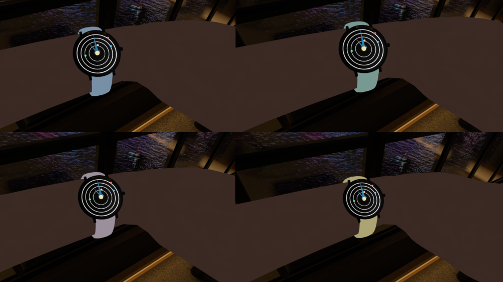 The strap on the more feminine version of the watch uses also a normal map and a texture, immitatting a chainlet bracelet look. It also offers a veriety of pastel colours to choose from (see preview below)